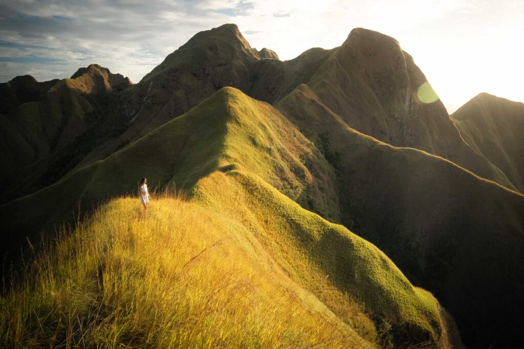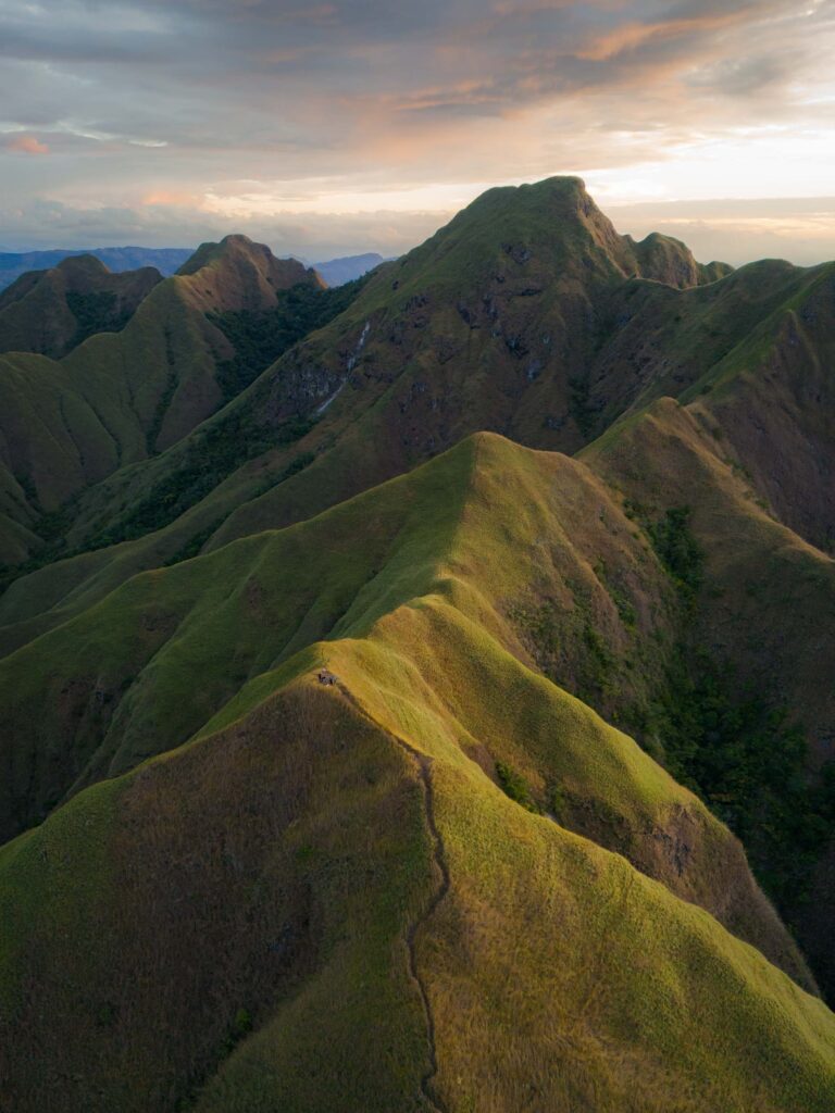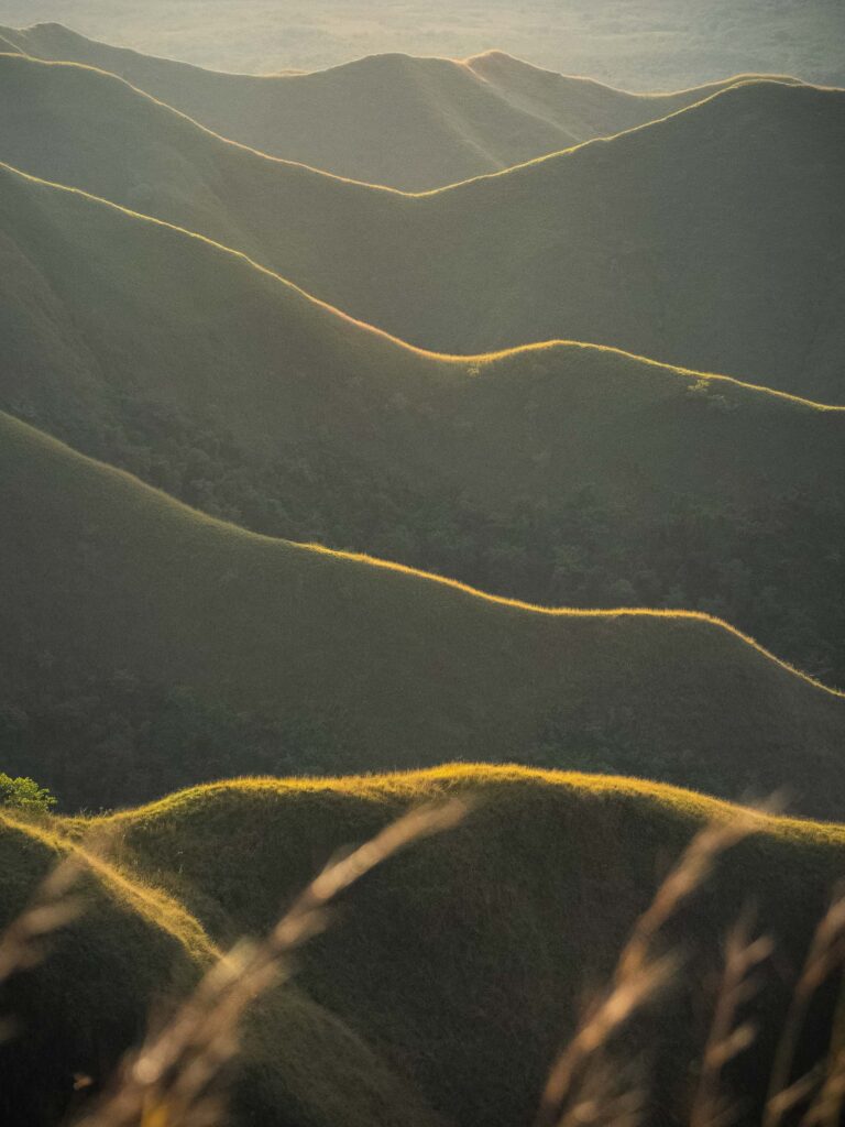 After about 40 minutes of steady uphill, we reached a flat stretch near the top and paused to wait for sunrise. As the sky lightened, the ridges and peaks around us came into view — layers of mountains bathed in soft gold light, stretching farther than you expect. The view felt otherworldly. We spent golden hour running around the ridge, taking photos and videos, and just breathing in the scene before hiking back down in daylight.